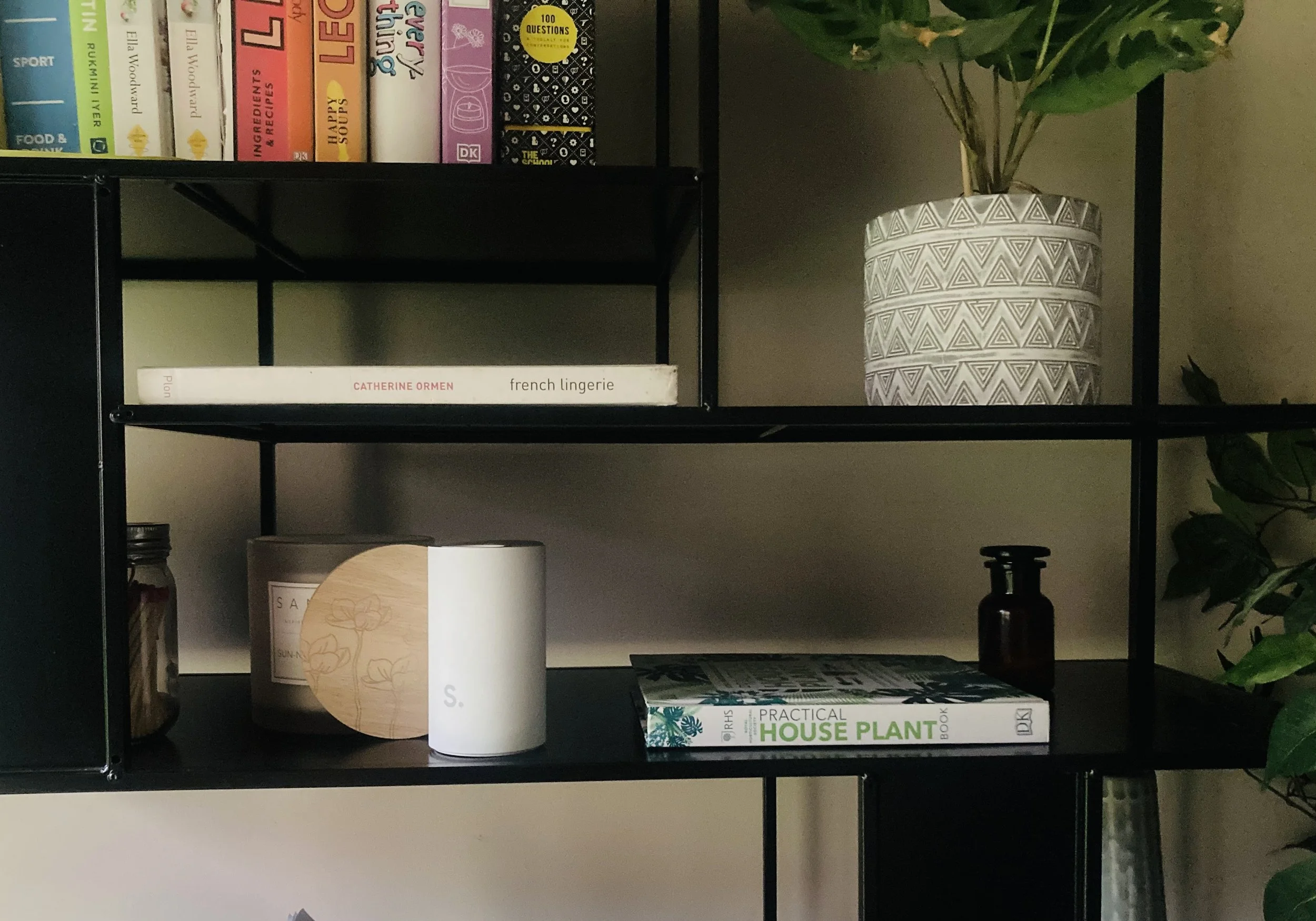 This includes natural materials like books, paper, plants, fabrics or wood, as well as added elements like a candle or a diffuser that belongs to one place and is used lightly.